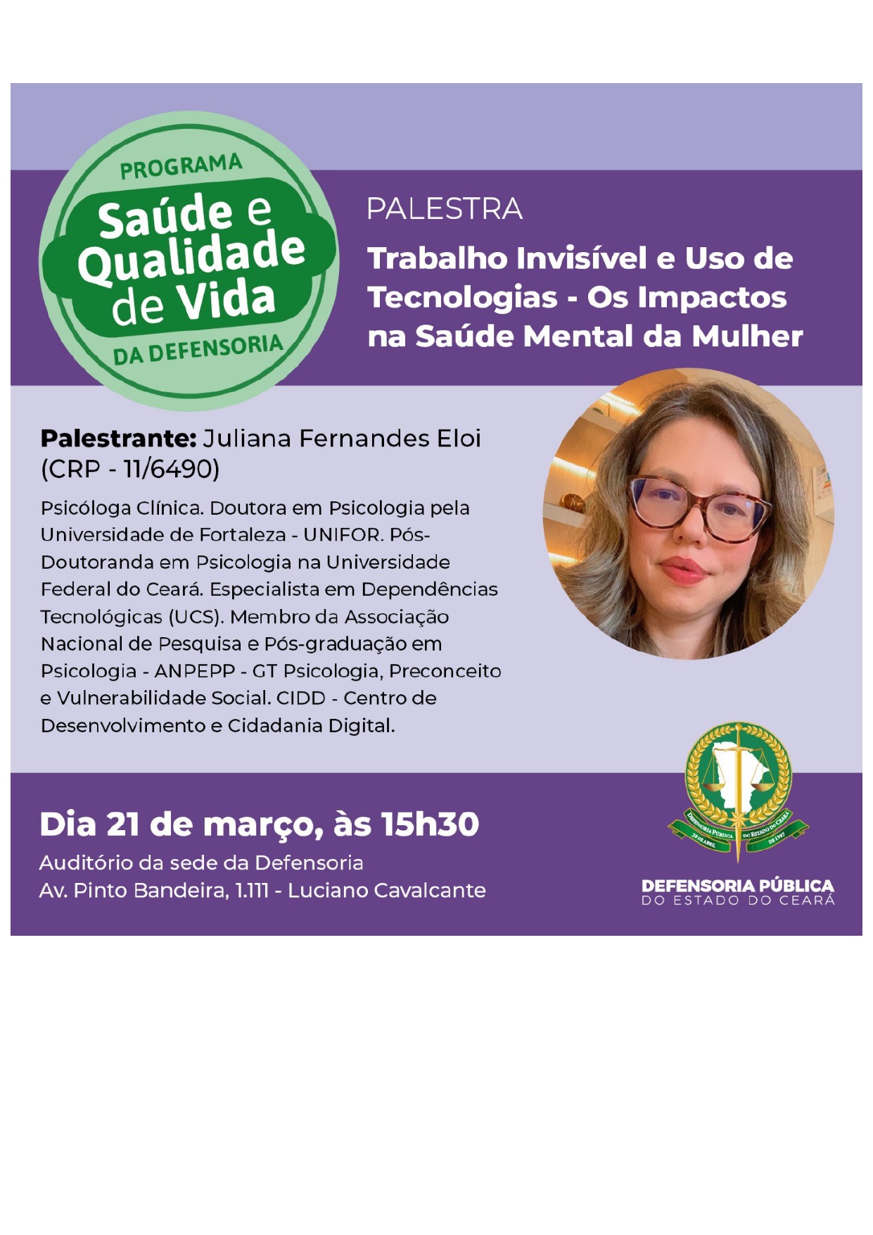 Palestra Trabalho Invisível e Uso de Tecnologias - Os Impactos da Saúde Mental da Mulher